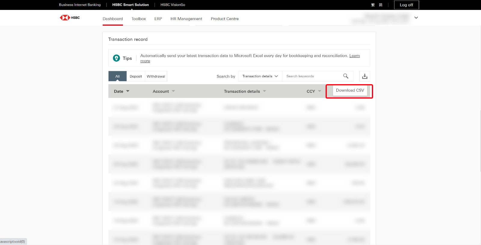 匯豐銀行紀錄每天自動導入系統,方便快捷!